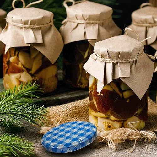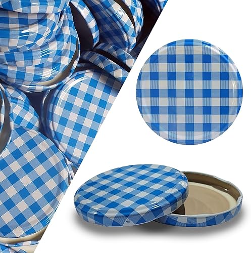 Lot de 50 couvercles pour bocaux to 82 de 230/350 / 435 ML Bleu à Carreaux