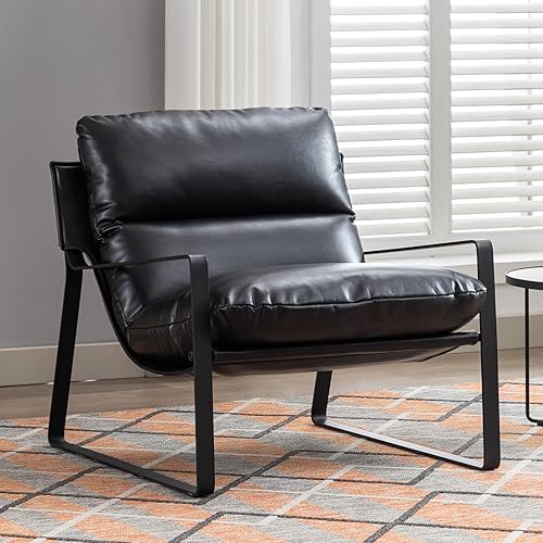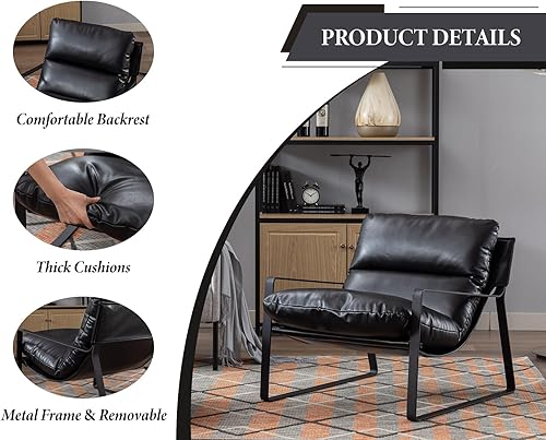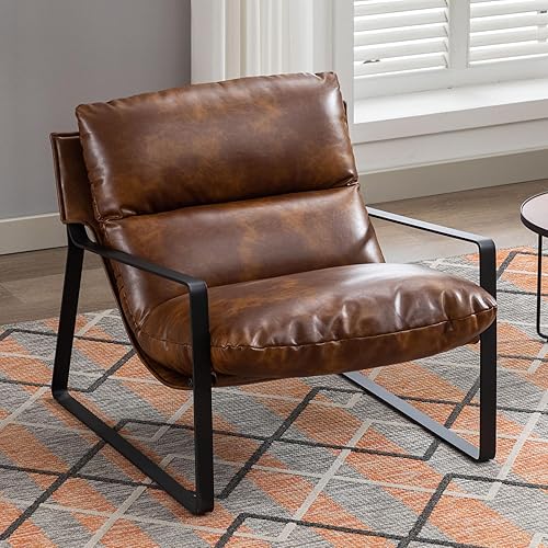Ya-Home Fauteuil de Salon Moderne en Cuir PU Fauteuil Chambre Confortable avec Cadre en Métal, Fauteuil Relax pour Salon/Chambre, Marron