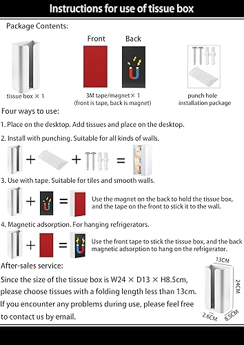 NICEME Boîte à Mouchoirs, Porte Mouchoirs Magnétique, Boite Mouchoirs Murale, Aucun Perçage Requis, Convient pour la maison, la cuisine, le réfrigérateur et la machine à laver, 24 x 13 x 8.5 cm, Blanc