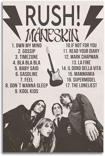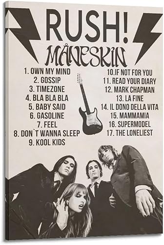 SAHEAWEBWBAE Måneskin RUSH Affiches murales esthétiques sur toile vintage - Peinture décorative pour salon, chambre à coucher - 30 x 45 cm - Style sans cadre