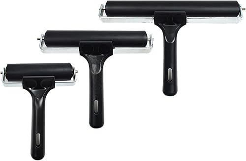 Lot de 3 Rouleau en Caoutchouc, Rouleau Encreur, Rouleau de Gravure en Caoutchouc, Rouleau de Colle en Caoutchouc, Rouleau à Couture, pour la Gravure, les Loisirs Créatifs (6 cm/10 cm/15 cm)