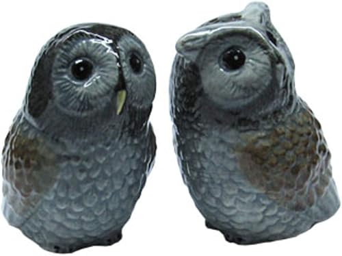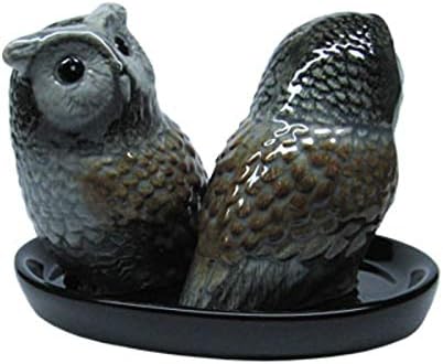 B2SEE LTD Salière et Poivrière en Céramique Hibou - 3 Pièces en Céramique Noire