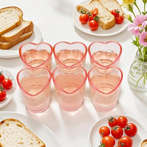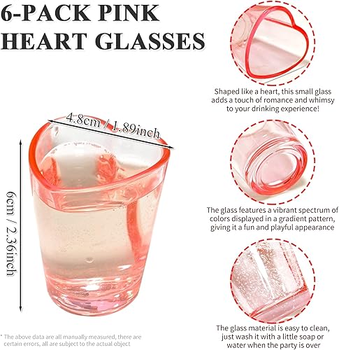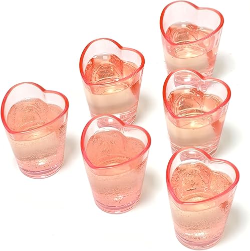 Gute Lot de 6 verres à shot colorés en forme de cœur avec base lourde pour whisky, tequila, spiritueux et liqueurs, Saint-Valentin, enterrement de vie de jeune fille (coloré)