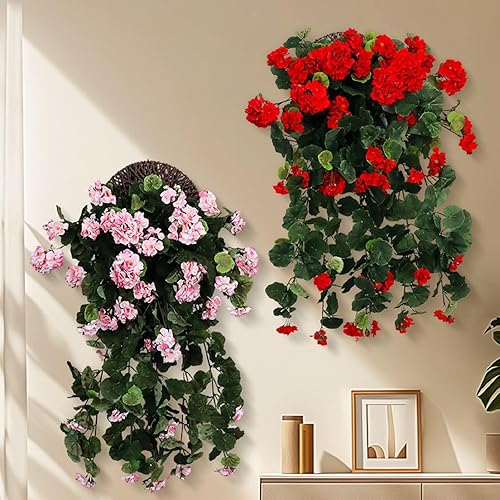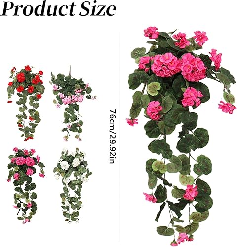 Fleurs artificielles d'extérieur, fleurs de géranium artificielles à suspendre, plantes en plastique résistantes aux UV qui ne se décolorent pas, décoration de mur et de clôture pour mariage, maison