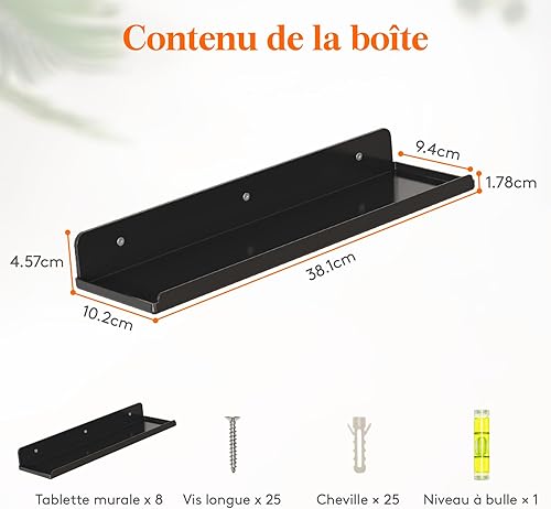 Lifewit Étagères Flottantes Murales, Lot de 4 en Plastique Blanc de 38 cm, Décoration d'Intérieur pour Livres/Disques Vinyle/Photos dans la Chambre, Le Salon, la Cuisine, Rangement et Organisation