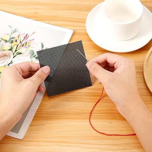6 Pièces de Toile en Maille Plastique, 28 x 21cm 14 CT Feuilles de Toile en Maille Plastique Point de Croix Écran en Maille Aïda en Plastique pour l'Artisanat DIY Projets de Crochet (Noir)