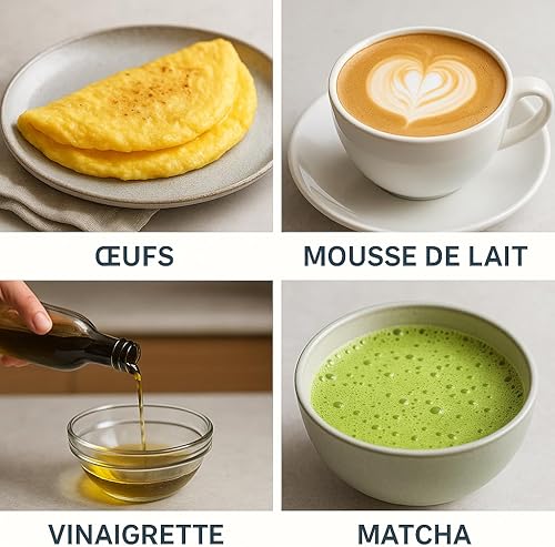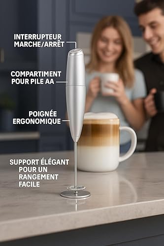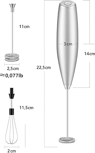 Mousseur à Lait électrique, Fouet électrique, Mousseur à Lait cappuccino, à Piles, Mélangeur Puissant pour Café, Latte, Chocolat chaud, Cappuccino, Matcha, Oeufs, Sauces, Vinaigrettes