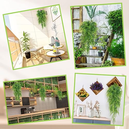 MengQiLe 6 pièces Plantes artificielles suspendues Plantes artificielles fougères artificielles extérieur Faux Suspendu Plantes 90 cm Long intérieur Panier Suspendu sans Entretien (fougère)