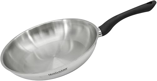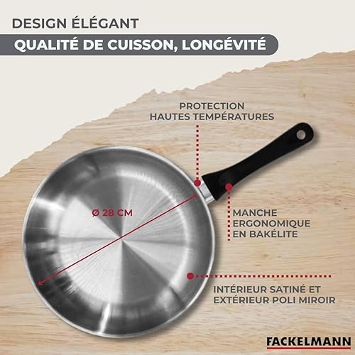 Fackelmann 681853 Poêle 28 cm en inox, Poêle de cuisson, Poêle tous feux, Poêle induction, Poêle sans PFAS, Acier inoxydable 18/8, Gris, 28 x 5,5 cm