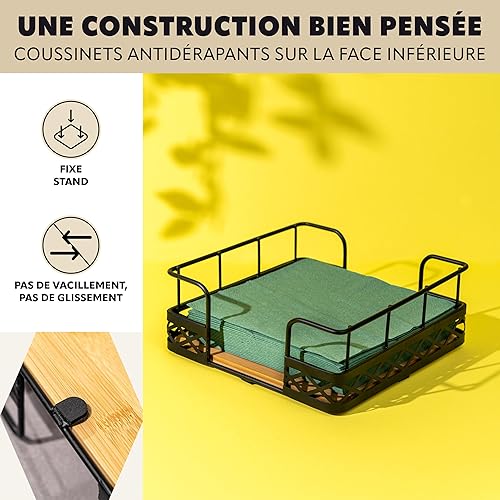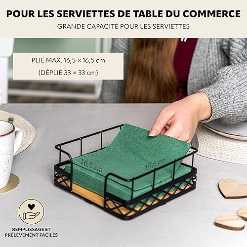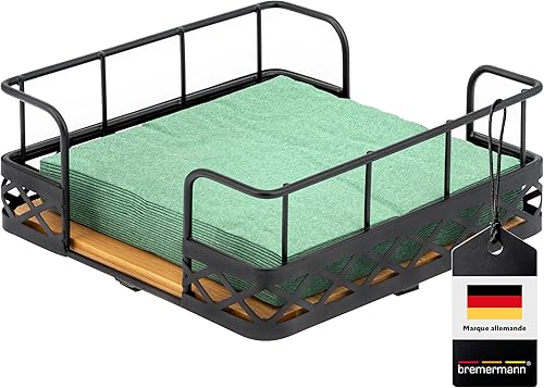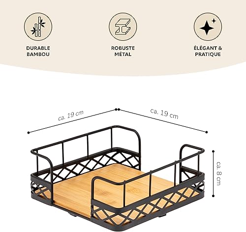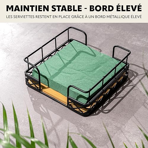 bremermann Porte-serviettes pour serviettes de 33 x 33 cm, en bambou avec bord haut en métal, distributeur de serviettes, env. 19 x 8 x 19 cm