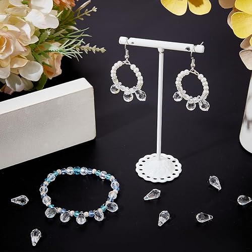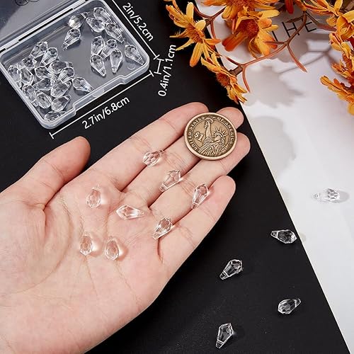 Beebeecraft 1 boîte de 40 Breloques en Forme de Goutte d'eau en Vrac en Verre Transparent à Facettes en Cristal de Lustre en Forme de Larme avec Dessus Percé en Forme de Perles en Vrac pour la