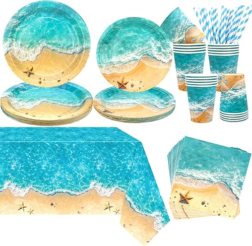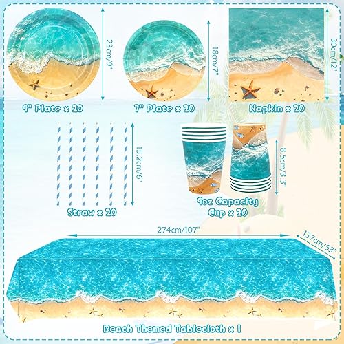 Les décorations de fête sur la plage comprennent assiettes, nappes, serviettes de table, vaisselle pour piscine d'été, fête hawaïenne, décorations d'anniversaire, servies 20 ans