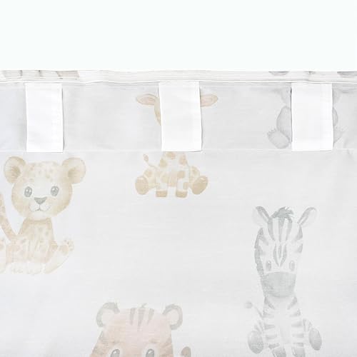 Delindo Lifestyle Rideau pour chambre d'enfant, motif africain, 140 x 175 cm, avec passants cachés ou galon fronceur, blanc, opaque, moderne, pour filles et garçons