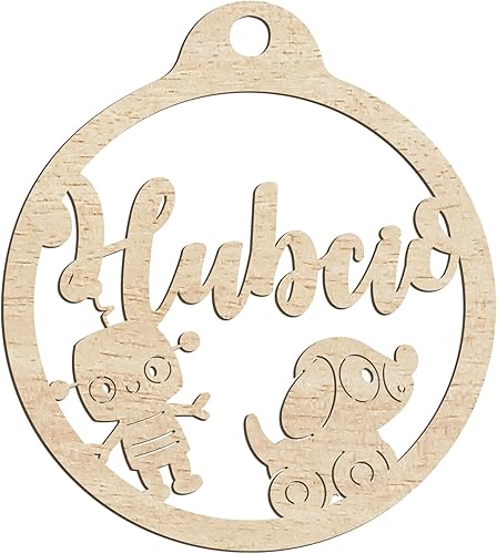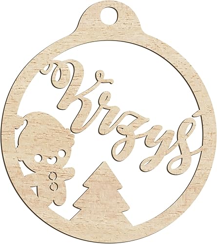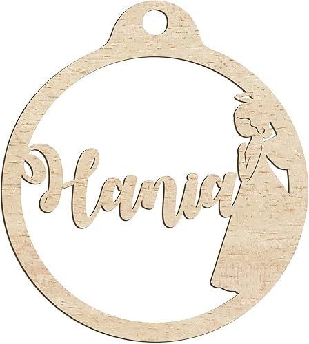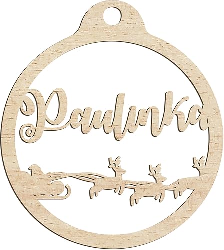 Happenings-Decorations Boule de Noël personnalisée en bois avec pendentif gravé à n'importe quel nom Décoration de Noël naturelle (modèle 4)