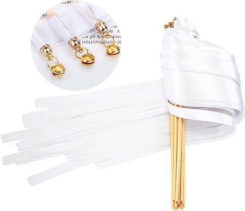 30 pièces Baguettes de Mariage Blanc Bâton Ruban Mariage pour Mariage Serpentins avec Cloches pour de Mariage Anniversaire Props Dance Party