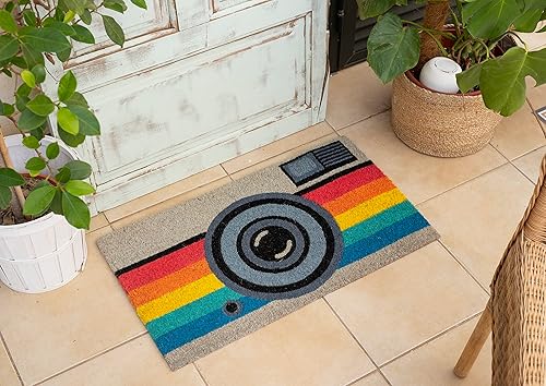 Fisura - Tapis intérieur en noix de coco. Paillasson antidérapant en PVC. Paillasson original peint à la main. Taille : 70 cm x 40 cm. (Arrivées, jaune)