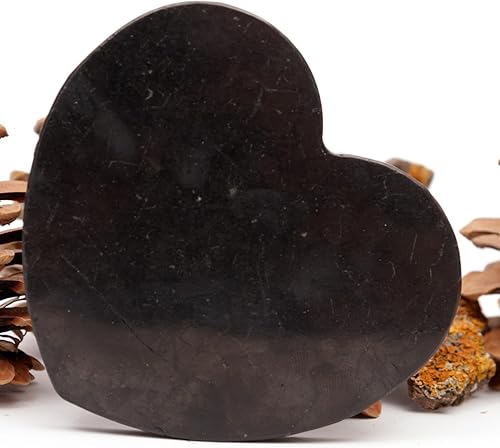 Igox Plaque polie en shungite en Forme de cœur - 100 mm - Pierres de guérison