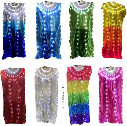 1 ventilateur de danse orientale à LED avec poignée en bois pour améliorer les effets visuels