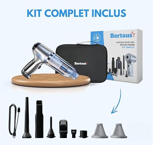 bertaus Aspirateur G80 - Édition Power Aspirateur à Main sans Fil 2-en-1 Multifonction, 180W Puissant avec 19KPA d'aspiration, Batterie 4000mAh Durable, Filtre Lavable, Maison et Voiture