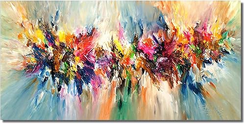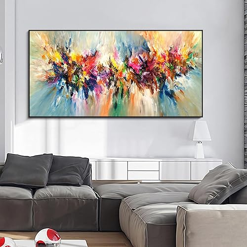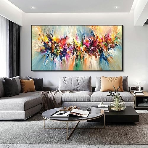 Peinture À L'huile Abstraite Paysage Peintures Sur Toile Grande Taille Coloré Mur Art Photos Pour Salon Décoration De La Maison 80x160cm/(31x63inch) avec-cadre-noir