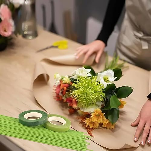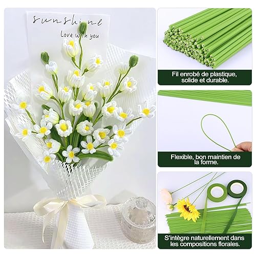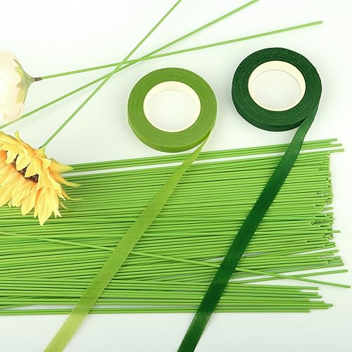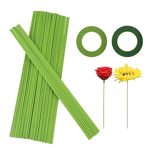100 Pièces Tige Fleur Artificielle 30cm, 2mm Tige Metal de Fleuriste de Fleurs, Tiges Florales en Fil de Fer, avec 2 Floratape, Facile à Plier, pour Bouquets Artisanat, Bouquet