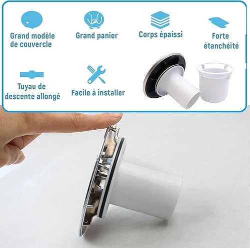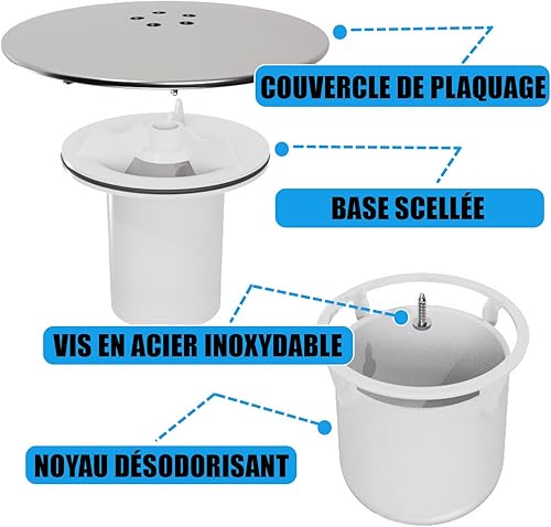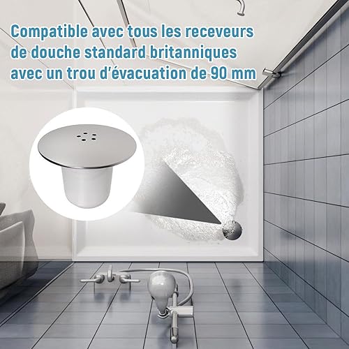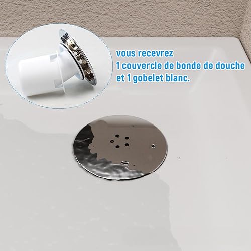 Esshogo Capot Bonde Douche, Universelle Siphon DoucheRemplacement de Couvercle, Couvercle de bonde de Douche, Bonde de Douche 115mm, Couvercle de Douche en Plastique chromé avec Panier