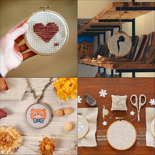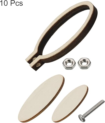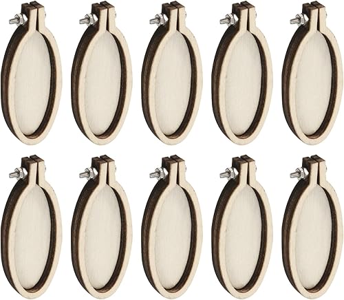 QUARKZMAN Lot de 10 Mini Cercles à Broder 2' x 0,87' - Petits Cercles Ovales en Bois pour pointe de Croix Vertical - Idéal pour Pendentif, Porte-Clés et Cadre D'Exposition DIY