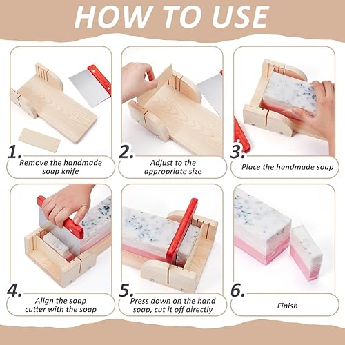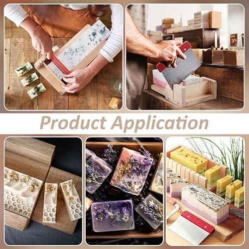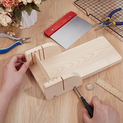 BENECREAT Ensembles D'Outils de Coupe de Savon Moule à Savon Réglable en Bois de Pin avec Coupe Savon en Acier Inoxydable pour la Fabrication de Savon Artisanal de Bougies de Découpe et de Bricolage