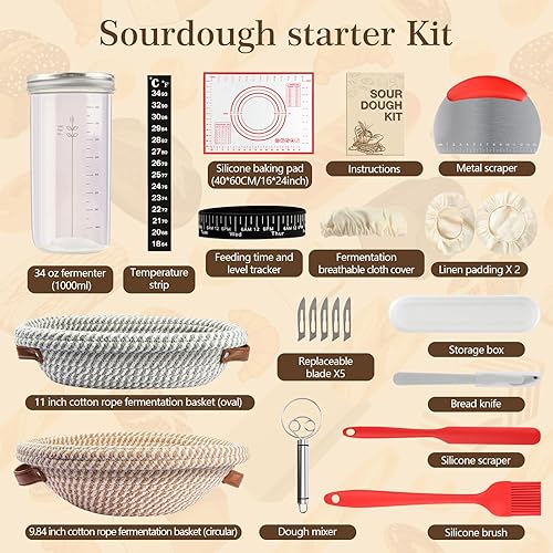 Panier de fermentation Banneton pour Pain,2 Corbeille a Pain set en Ovale et Rond, Banetton à pain,Kit de Démarrage de Sourdough convient aux boulangers,aux épouses, aux mères pour la cuisson du pain