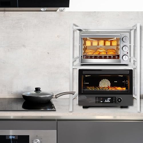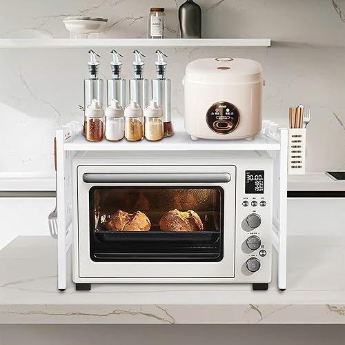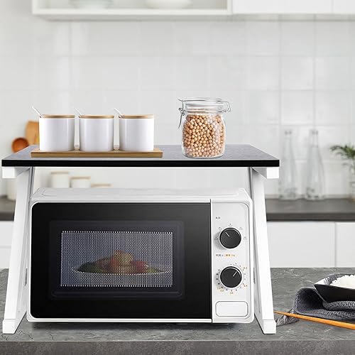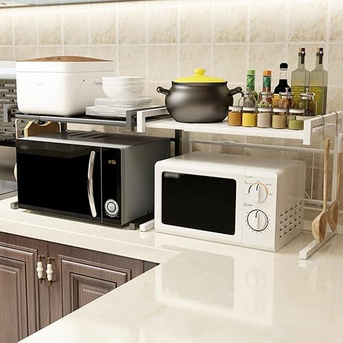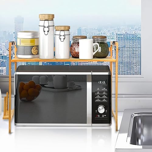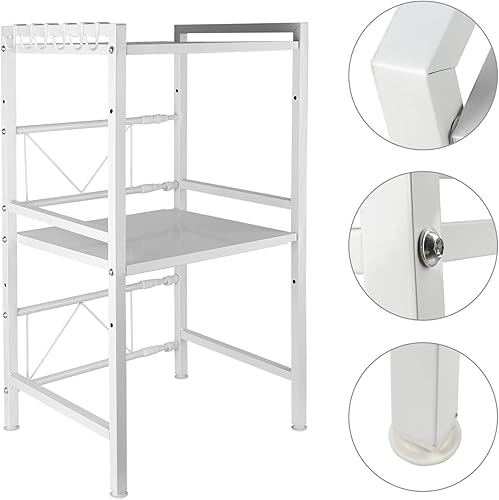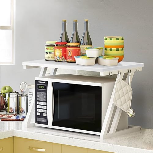 Étagère stable en bois pour four à micro-ondes avec crochets, support de four, grille à rôtir, étagère de plan de travail pour micro-ondes, étagère de rangement de comptoir de cuisine(57*38*38cm)