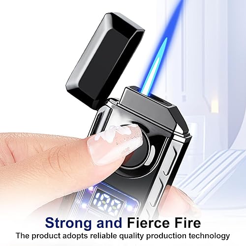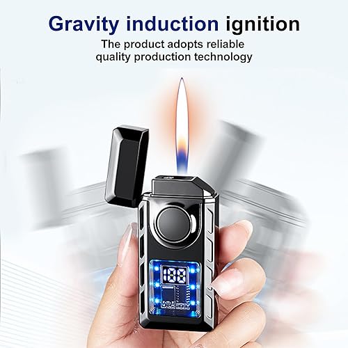 WIYETY Briquet double flamme intelligent en métal avec chambre à air visible - Coupe-vent - Convient pour cadeau - Noir