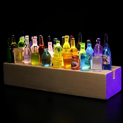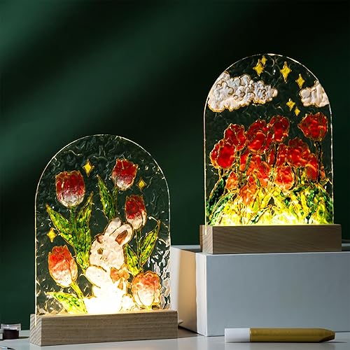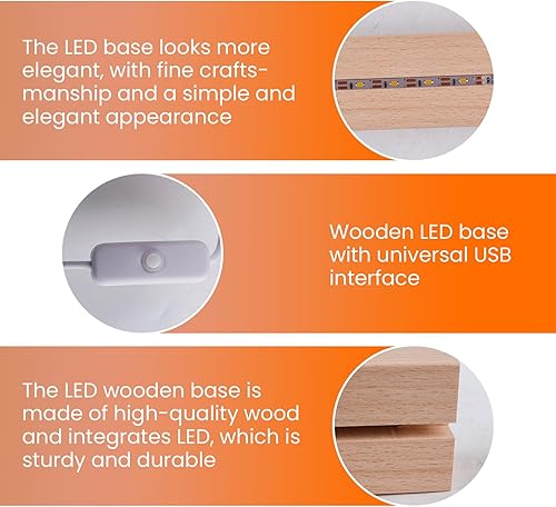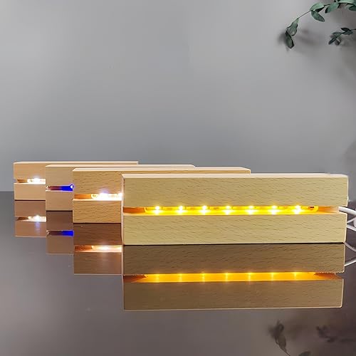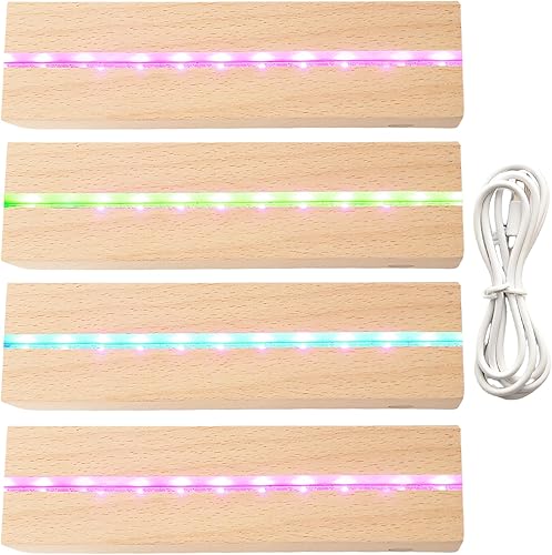 WIYETY Lot de 4 lumières LED de base : multicolore rectangulaire éclairage en bois support de base USB pour éclairage de bureau LED de 5 mm d'épaisseur plaque acrylique plaque de verre résine art (30