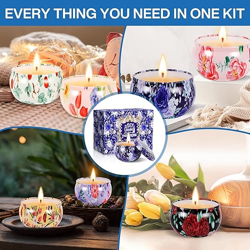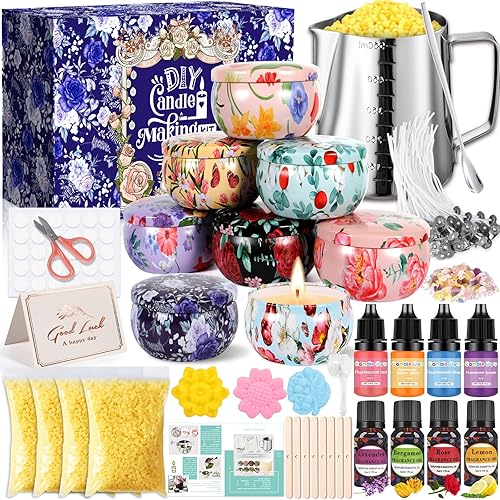 ZPQAODI Kit de fabrication de bougies, accessoires de fabrication de bougies à faire soi-même, kit cadeau de bougie parfumée, avec cire d'abeille, mèches de bougie, autocollants de mèches, 8 boîtes de