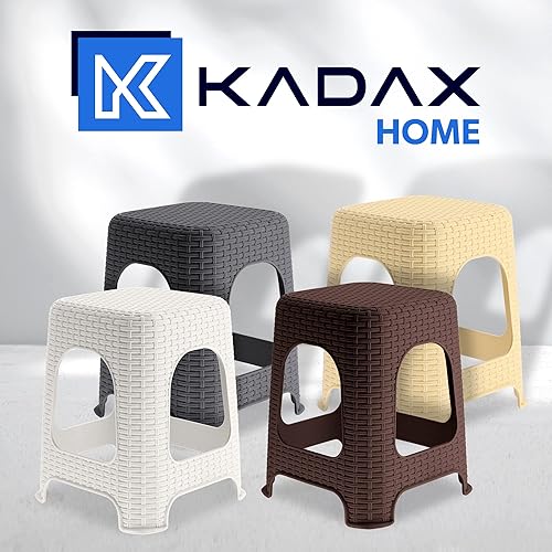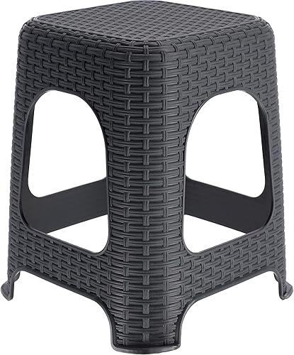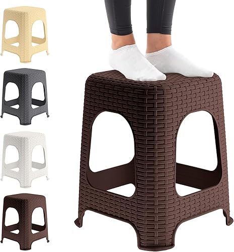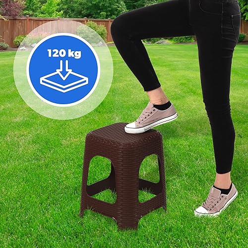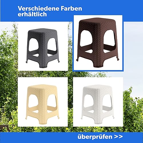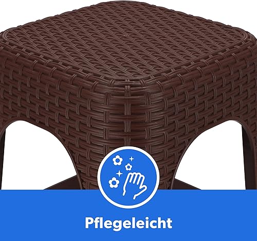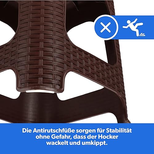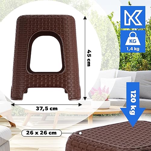 KADAX Tabouret en Plastique à l'Élégant Effet Rotin, Marchepied doté de Pieds Antidérapants pour Une Utilisation Intérieure et Extérieure (Marron)