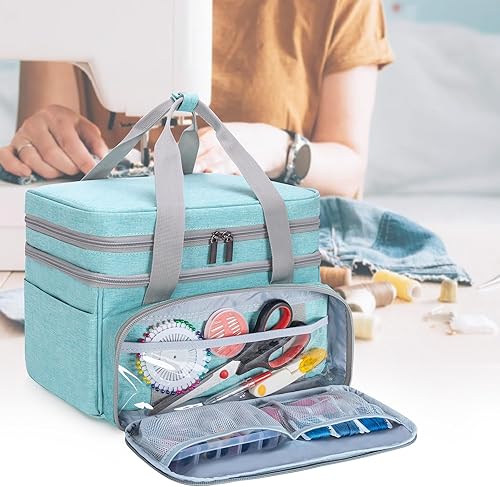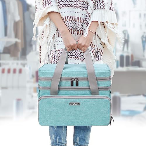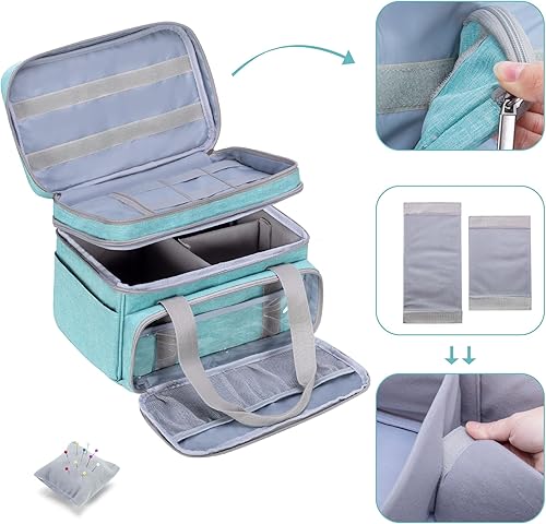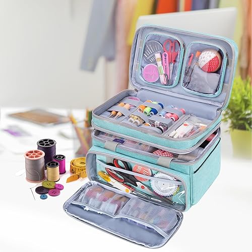 BAFASO Sac pour Kit de Couture Double Couche, Organisateur pour Accessoire Couture avec 2 Pochettes Détachables, Boite a Couture Grande (Aucun Accessoire Inclus), Vert