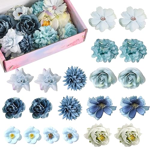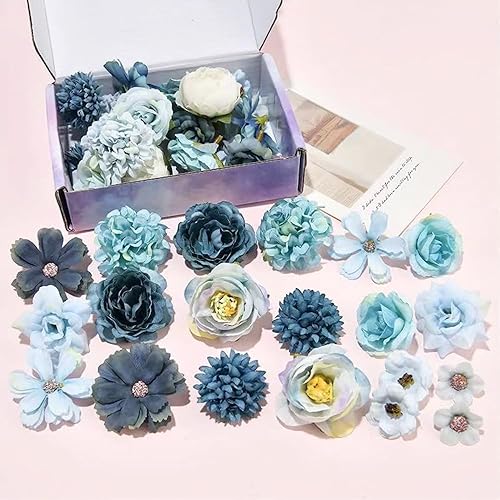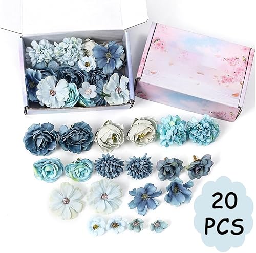 Sctmda Fleurs Artificielles Bleu 20 Pièces Faux Tête de Fleurs Têtes de Fleurs Artificielles Mini Fleurs Artificielles Tête de Fleur en Soie Petites Fleurs Artificielles Têtes Fausse Fleur Artisanat