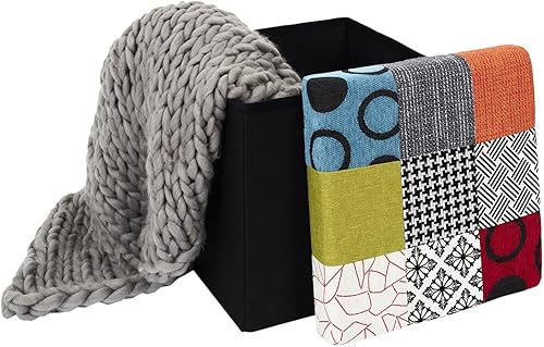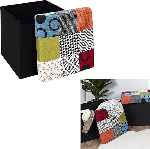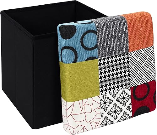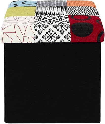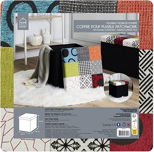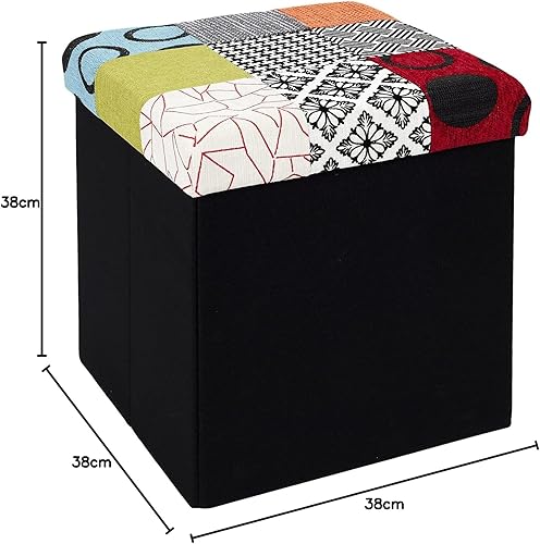 HOME DECO FACTORY - Hd6506 - Coffre Pouf Pliable, Dimensions. 38x38x38cm - Hauteur d'assise : 38cm - Test Assise 110Kg, Patchwork, Rangement Assise 2en1