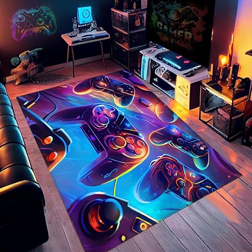 Tapis Chambre Ado Gamer Tapis Sol Gaming Chambre Deco Garcon Enfant Tapis De Salon Moderne Antidérapant 3D éclatant Néon Coloré Graffiti Console De Jeu Flanelle Doux Carpets (Vert,120x160cm)
