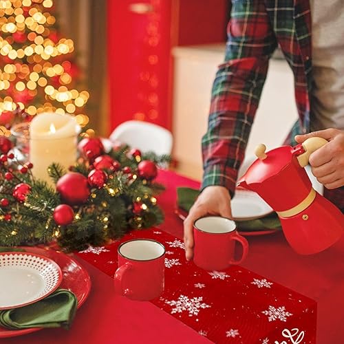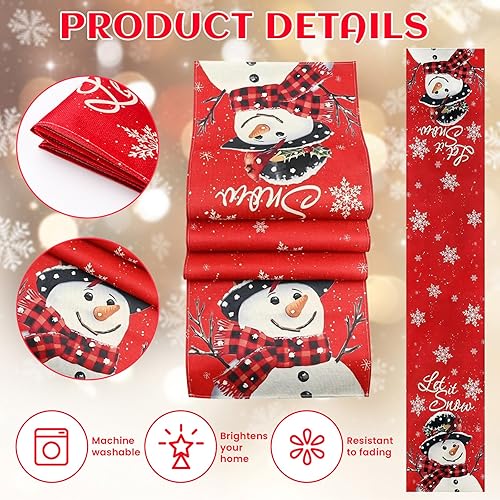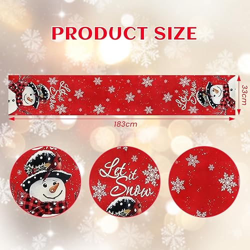 wadafen Chemin de Table Noel - Decoration Table Noel - Nappe Noel Rouge avec Flocon de Neige et Bonhomme de Neige - Chemin de Table en Linpour pour Décoration de Fête de Noël (33 x 183 cm)