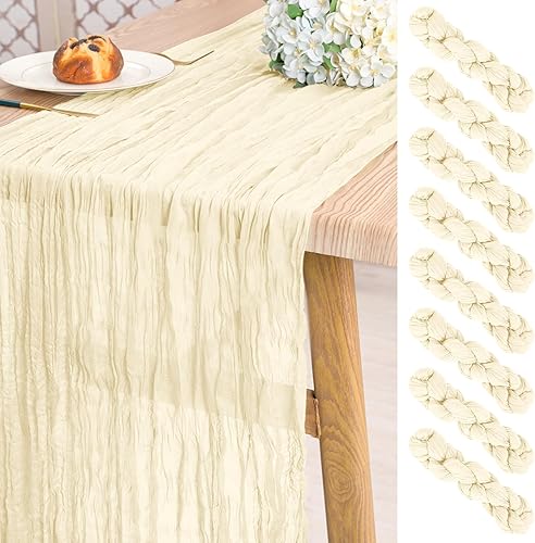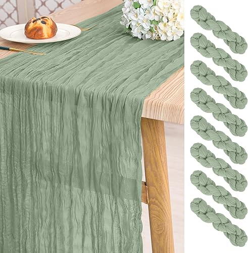 8 Pack Tissu au Cheesec Table Runner Sage Green, 3 m de Long Semi-cheminée Rustique Boho Table Runners pour Mariage, Douche Nuptiale, fête, décoration de Banquet (55 x 300 cm)