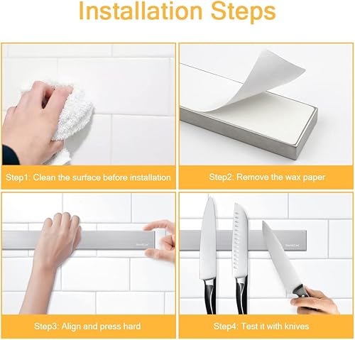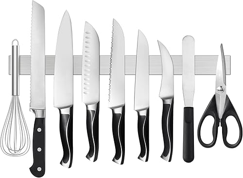 SMART&COOL Porte-couteaux magnétique mural en acier inoxydable avec aimant extra puissant pour couteaux, ustensiles de cuisine et outils 25 cm
