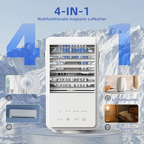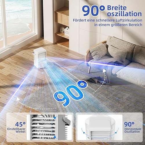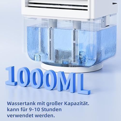 Climatiseur Mobile 1000ML,Rafraîchisseur d'Air avec Brumisation [Faible Conso] - Ventilation 3 Vitesses, Oscillation 90°, Minuterie 4H, RGB & Type-C - Réservoir 1L Silencieux pour Maison/Bureau