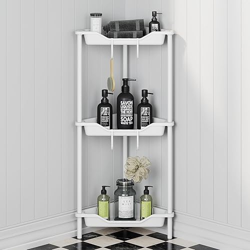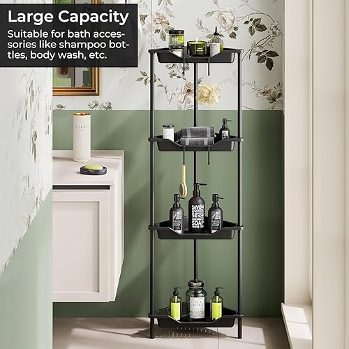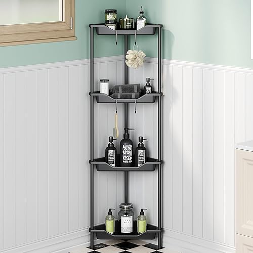 OriwarE Étagère de Rangement Salle de Bain à 4 Niveaux, Etagere Douche sans Percage, Etagere Rangement, Accessoire Salle De Bain, Blanc