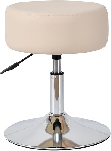 DUHOME Tabouret Pivotant Tabouret de Maquillage Tabouret Rond avec Rembourrage Réglable en Hauteur Pivotant en Similicuir pour Chambre à Coucher Salon, Blanc