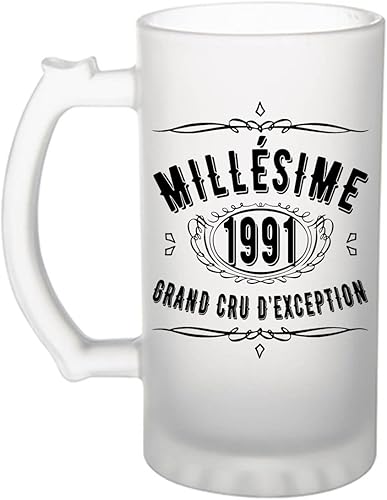 Chope de bière 1991 anniversaire 34 ans | Verre à bière Pinte idée cadeau original | Imprimé en France