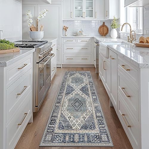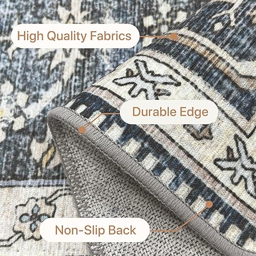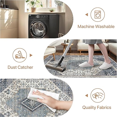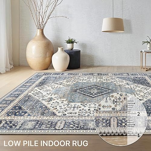 GENIMO Tapis Chambre Vintage Tapis Salon Oriental Doux Antidérapant Lavable en Machine Tapis Décoratif de Style Moderne pour Entree Interieur, 160x230CM, Bleu
