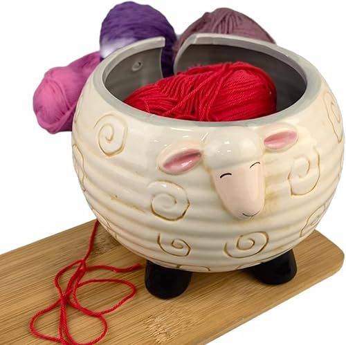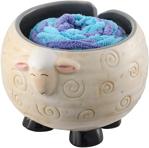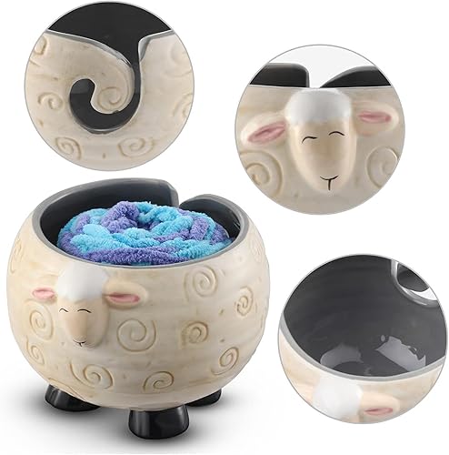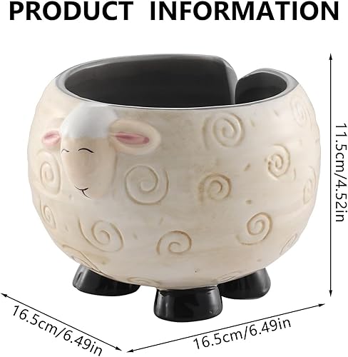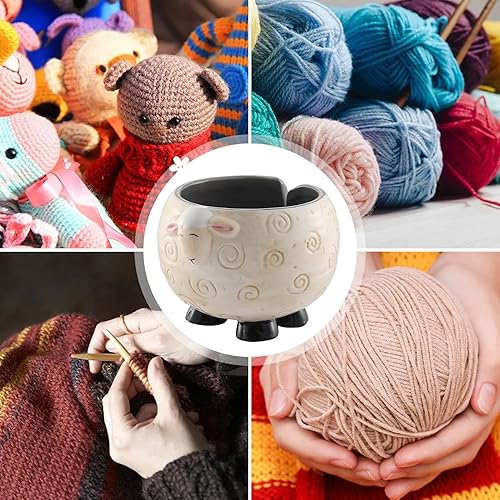 Bol à fil en céramique - Bol à fil en céramique pour moutons, porte-boules de fil à tricoter | Boîte de rangement en fil de céramique avec moutons panda, bol portable pour