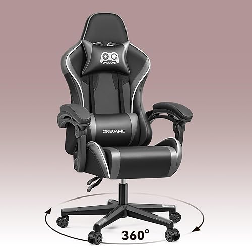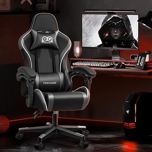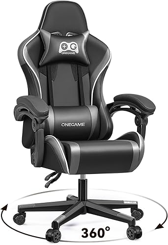 OneGame Chaise de gaming - Ergonomique - Réglable en hauteur - Avec dossier haut réglable - Coussin lombaire réglable - 150 à 200 kg - Gris