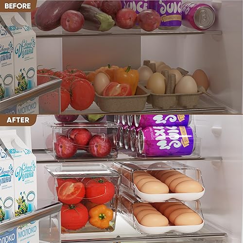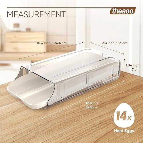 Theaoo Lot de 2 Porte-Œufs pour Réfrigérateur - Distributeur Automatique en Plastique Transparent, Organiseur Empilable avec Plateau Intérieur Amovible