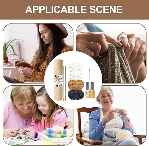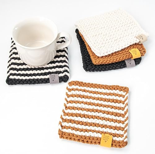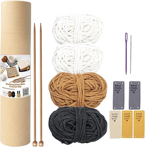 Kit de tricot pour débutants - ensemble de sous-verres tricotés, kit de démarrage au crochet | Ensemble de crochets, instructions étape par étape pour les sous-verres, fournitures de bricolage com